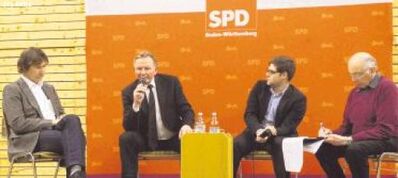 Einigkeit ist Trumpf auf dem Podium mit dem SPD-Landtagsabgeordneten Florian Wahl, SPD-Kreischef Felix Rapp, dem Grünen-Kreischef Sven Reisch, der den mit Verspätung in Böblingen auftauchenden Landtagsabgeordneten Dr. Bernd Murschel vertritt. Einigkeit ist Trumpf im Publikum, wenn die beiden Sindelfinger Stadträte Manfred Stock (SPD) und Sabine Mundle (Grüne) mit ihren Kollegen aus den Nachbarstädten fachsimpeln.